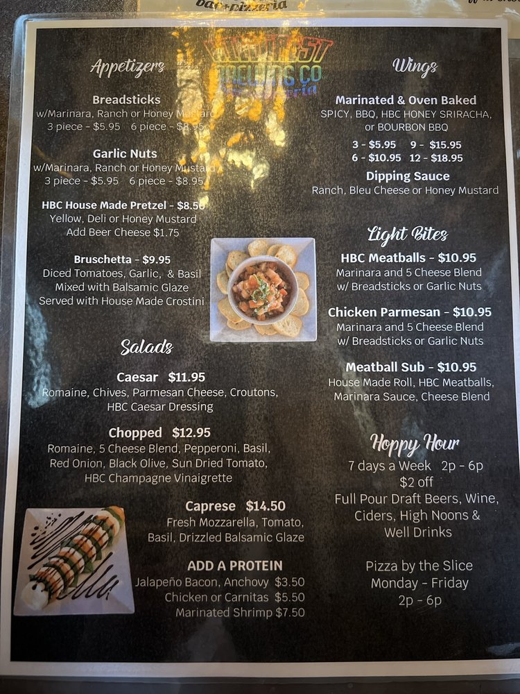 “ I was initially not aware of the Hillcrest Bewing Company Restaurant. It is tucked away at the side of a small shopping center known locally as Pride Plaza, since it is right beside a prominent Pride Flag flying over Hillcrest. I recently dined at a new restaurant in the plaza called Celler Hand, so i saw the Hilllcrest Bewing Company on that visit and made a mental note to return sometime soon. I decided to visit on a Monday, that I presumed would be quiet. However, to my surprise, there happended to be some kind of game on the many television sets that are suspended over the bar, so the crowds were beginning t oarrive soon after i got there. The hostess was a touch abrupt and matter-of-fact as to her greeting. Once the waiter came over, he was busy, but remained kind as well as efficient. I orered the very thin crust pizza, and it was pretty good. I think I ate most of it. ”